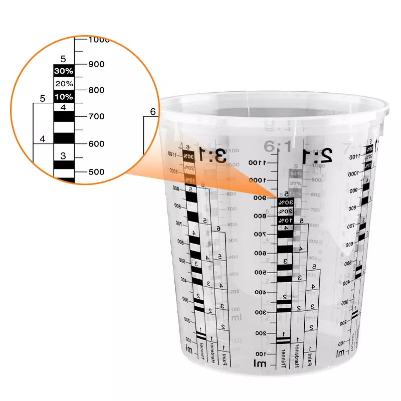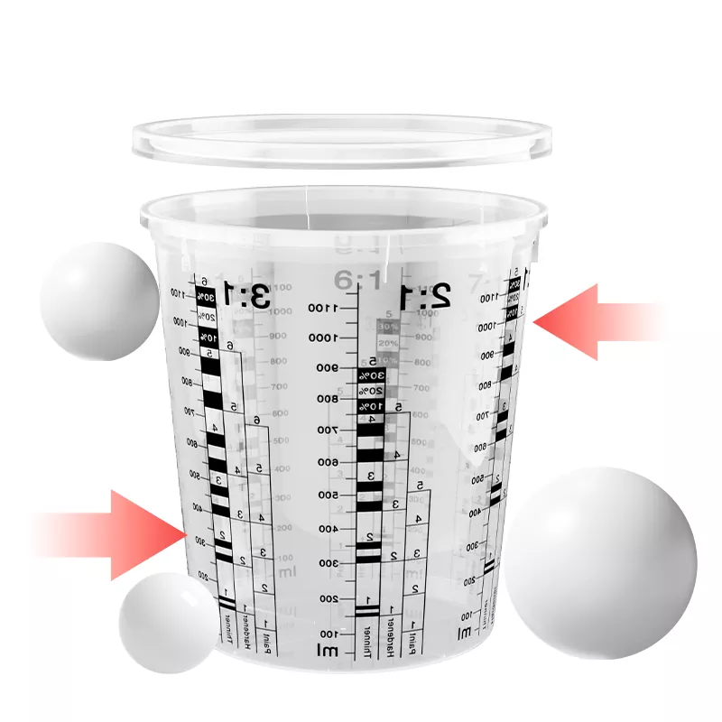 پینٹ مکسنگ اور مخلوط پینٹ کے عارضی اسٹوریج کے لئے ڑککن کے ساتھ 385 ملی پی پی آٹوموٹو پینٹ مکسنگ کپ۔ 7 مختلف مکسنگ تناسب ، واضح طور پر چھپی ہوئی اور اندر سے پڑھنے کے قابل۔ ہر ضرورت کے مطابق ڑککن ، ڑککن کے ساتھ اعلی معیار کا پینٹ مکسنگ کپ الگ الگ خریدا جاسکتا ہے۔ ہم پانچ صلاحیتیں پیش کرتے ہیں۔