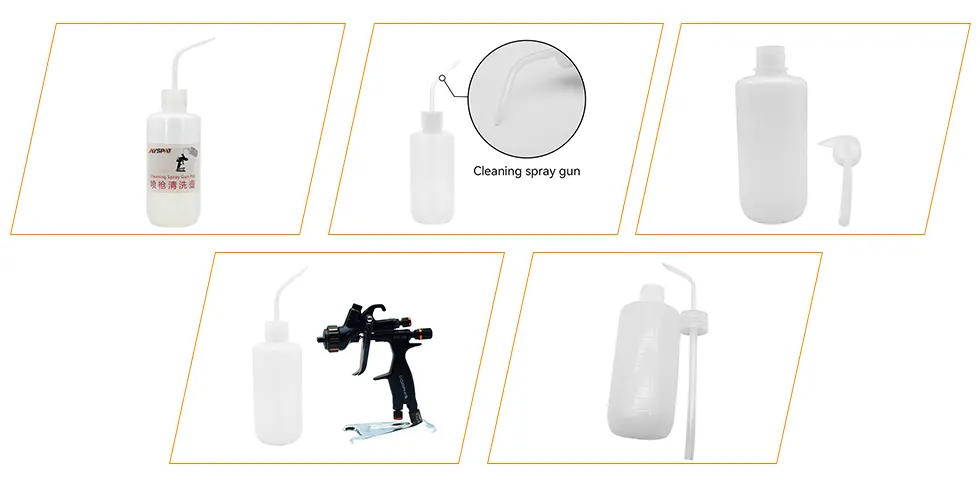 آئسپٹ سپرے گن واشنگ برتن ایک موثر اسپرے گن صفائی کا آلہ ہے جس میں صفائی کا بہترین اثر ہے۔ یہ سپرے گن میں باقی پینٹ کو جلدی سے کللا سکتا ہے ، جو سپرے گن کے اندر صحت سے متعلق حصوں کی بہتر حفاظت کرسکتا ہے۔ سپرے گن دھونے کا برتن چلانے میں آسان ہے ، اور بوتل کے جسم کو نچوڑ کر مائع بہاؤ کی شدت اور سمت کو خاص طور پر کنٹرول کیا جاسکتا ہے۔ پینٹنگ آپریشن کے بعد ، اسپرے گن کے اندر پیچیدہ پائپوں کے داغوں کو فلش کرنے کے لئے سالوینٹ کو لوڈ کرنے کے لئے بندوق واشنگ برتن کا استعمال کریں ، جو سپرے گن کو برقرار رکھ سکتا ہے اور اس کی خدمت کی زندگی کو نمایاں طور پر بڑھا سکتا ہے۔ گن دھونے کی بوتل نرم اور ہلکا پھلکا پی پی مواد سے بنی ہے ، جو ایسٹون اور ٹولوین جیسے سالوینٹس کے ذریعہ سنکنرن کے خلاف مزاحم ہے۔ یہ آپ کے سپرے گن کی بحالی کے لئے ایک مثالی حل ہے۔